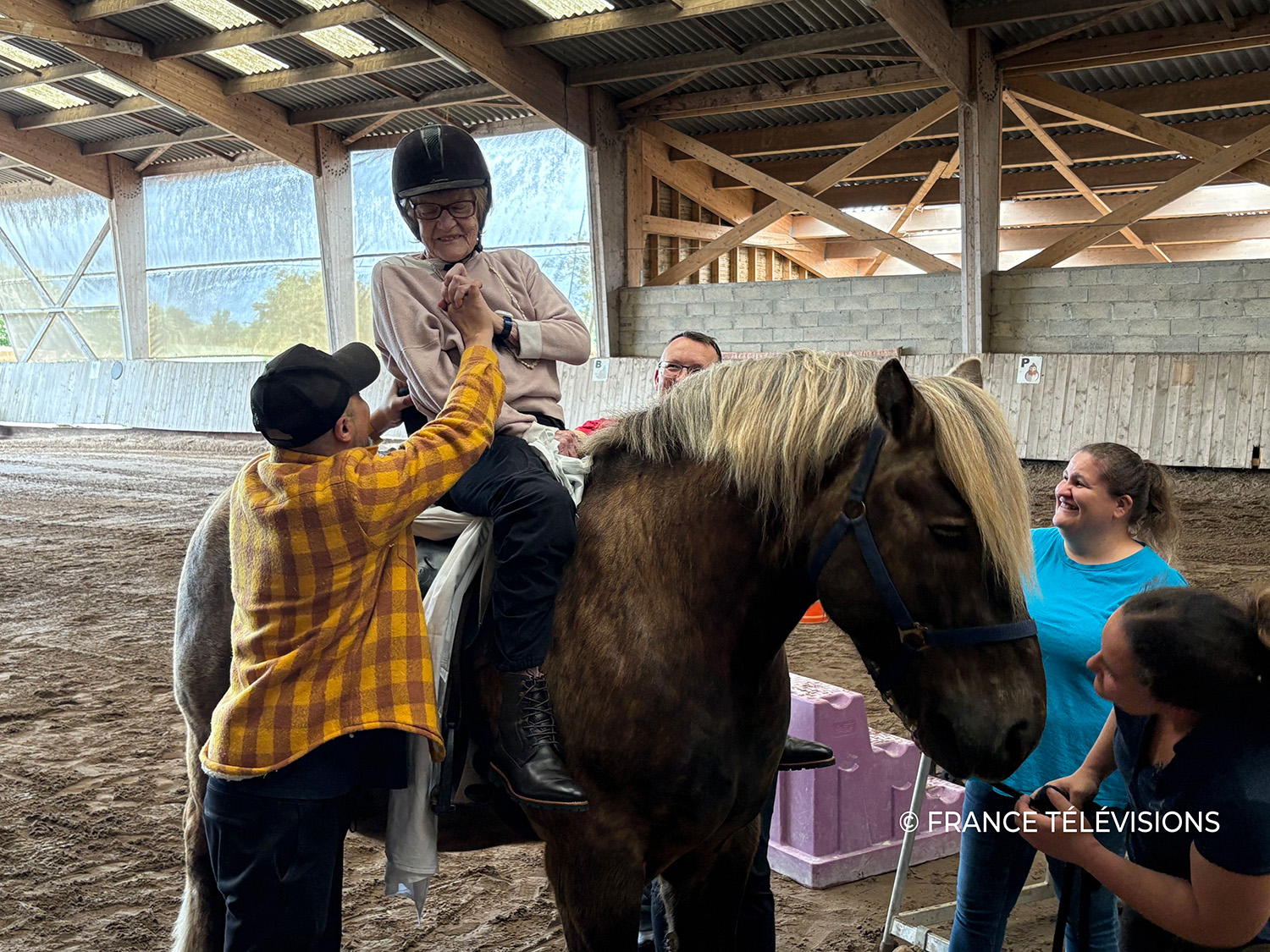 Fernande Phelizon a vécu son rêve ce mardi 27 mai 2025 en remontant à cheval à 103 ans. Un projet fou organisé par les équipes de sa maison de retraite à Saint-Germain-la-Ville (Marne).